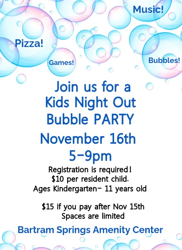 Monday's and Wednesday's starting September 16th to November 6th. 5pm to 6pm at the Bartram Springs Basketball court. Register at www.happyhoopsbasketball.com. Cost $99 once per week for 8 weeks or $198 twice per week for 8 weeks. Ages 2nd grade thru 6th grade.